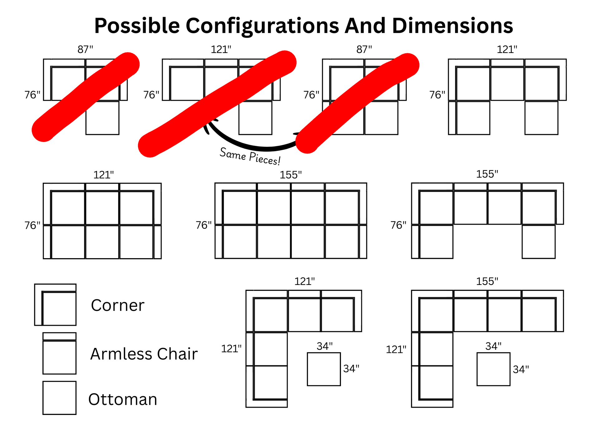 121" x 76" x 34" (for standard 3 x 2 modular setup)